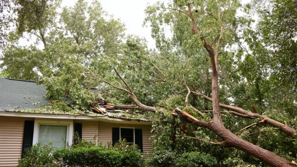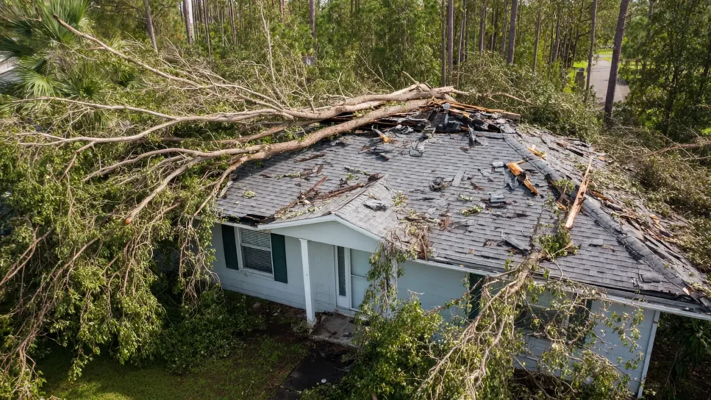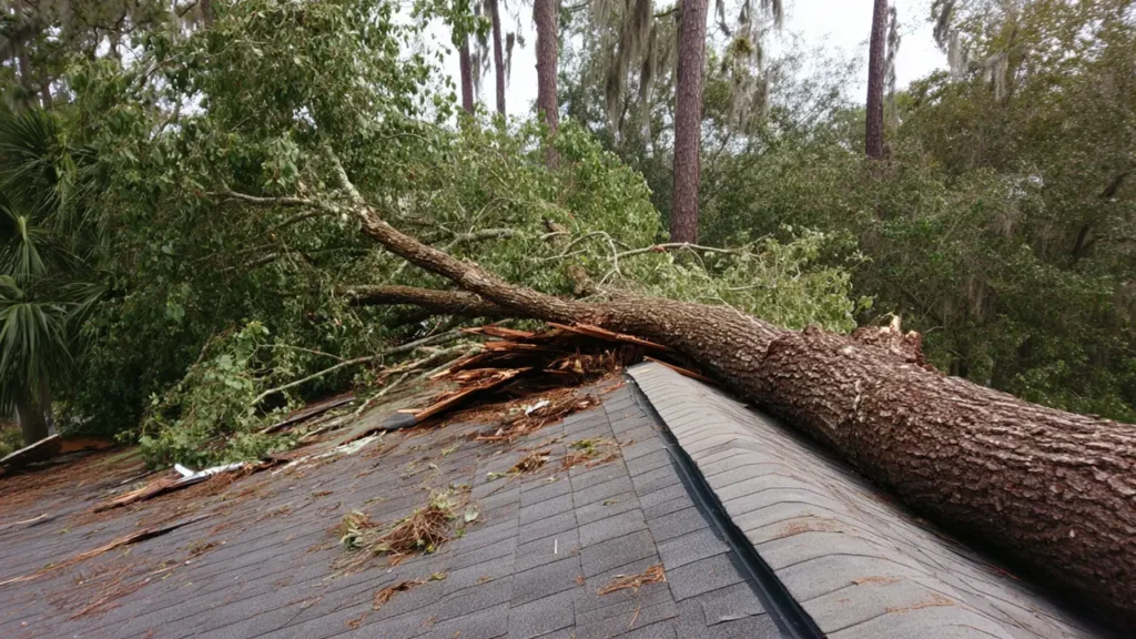 First, ensure everyone is safe and evacuate if you suspect structural damage. Then, call us at GreenTek Roofing & Solar for emergency repairs to prevent further issues. If the fallen tree is large or unstable, contact a professional arborist to have it safely removed before beginning roof repairs.